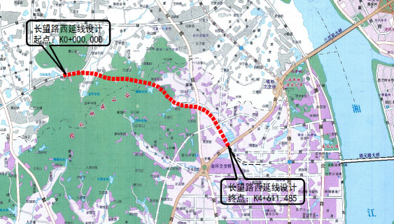 長(zhǎng)望路西延線位于湘江新區(qū)范圍內(nèi),路線呈東西走向。道路西接黃金大道,往東沿谷山森林公園北側(cè)山體埡口,穿過(guò)龍湖湘風(fēng)原著,往東接現(xiàn)狀金星北路,再向東南連接現(xiàn)狀西二環(huán),道路全長(zhǎng)4.611KM,并對(duì)長(zhǎng)望路(西二環(huán)-觀沙路)段進(jìn)行了改擴(kuò)建設(shè)計(jì),長(zhǎng)度0.611KM,金星路、黃金大道立交范圍內(nèi)的主線及輔道進(jìn)行改造。本標(biāo)段范圍為K0+000-K1+520。其中包括跨線一座、下穿式矩形框架橋一座、地下人行通道一座,線路設(shè)計(jì)為城市主干路、設(shè)計(jì)車(chē)速60km/h。