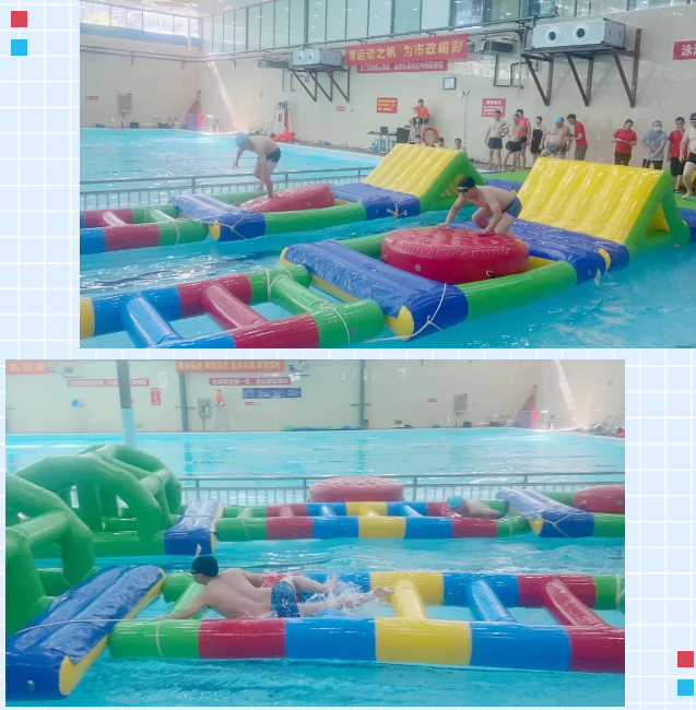 比賽項目分為“風雨同舟”、“爭分奪秒”、“奧運五環(huán)”、“勇往直前”四個環(huán)節(jié),選手們充分利用水上道具,你追我趕、頑強拼搏,將比賽的氣氛推向高潮,歡聲笑語不斷、氣氛熱鬧非凡。
