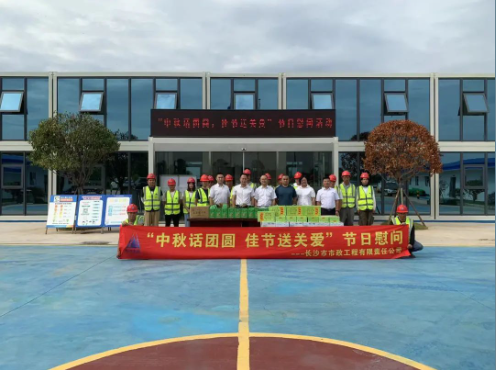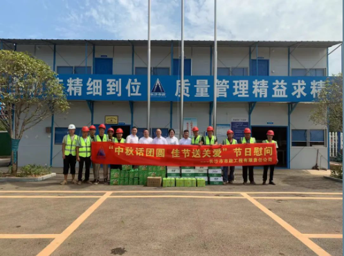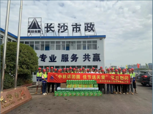 公司總經理石含,副總經理丁紅軍為靳江河西岸(含東山灣路)綜合整治工程項目、青竹湖統(tǒng)征儲備地塊配套路網工程項目 、秋江西路等六條路工程項目、長沙機場中軸大道工程項目的一線員工發(fā)放了月餅、水果、礦泉水等慰問品,帶去公司對他們的問候和囑托,對大家的敬業(yè)奉獻精神表示高度贊揚,并叮囑大家一定要保重身體,注意安全,圓滿完成施工任務。